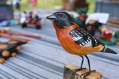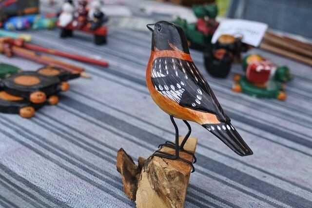 細かく手描きをした木彫りの鳥