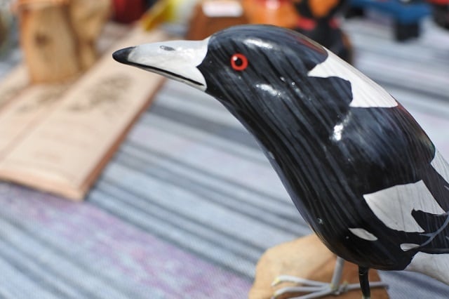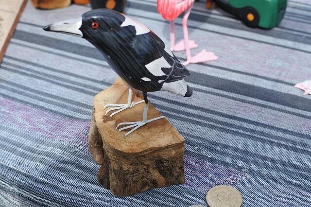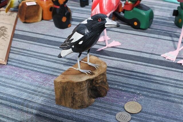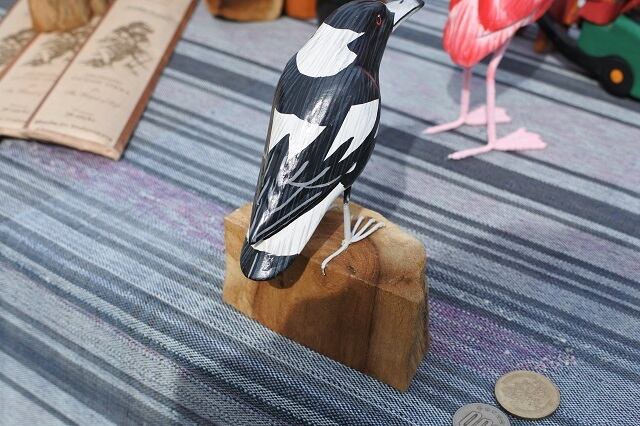 細かく手描きをした木彫りの鳥