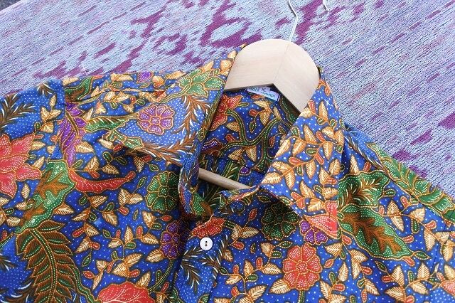 インドネシアのマシーンプリント(プリントバティック)で作った、ドレスシャツ。
